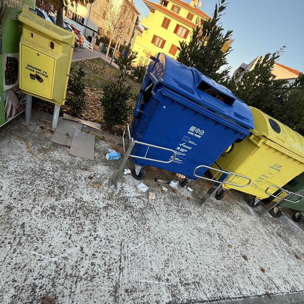 Molimo za temeljito čišćenje oko kontejnera jer se nalaze ostaci kruha i druge hrane. Iza kontejnera također ima mnogo lišća i grana. Lokacija: Fažanska ulica. Djelatnici komunalnog poduzeća ne brinu dovoljno o tome da pometu nakon što isprazne smeće. To vrijedi i za kontejnere za miješani otpad ispred Studenca te dolje na parkingu preko puta i pored Caffé bara Planet. Hvala.