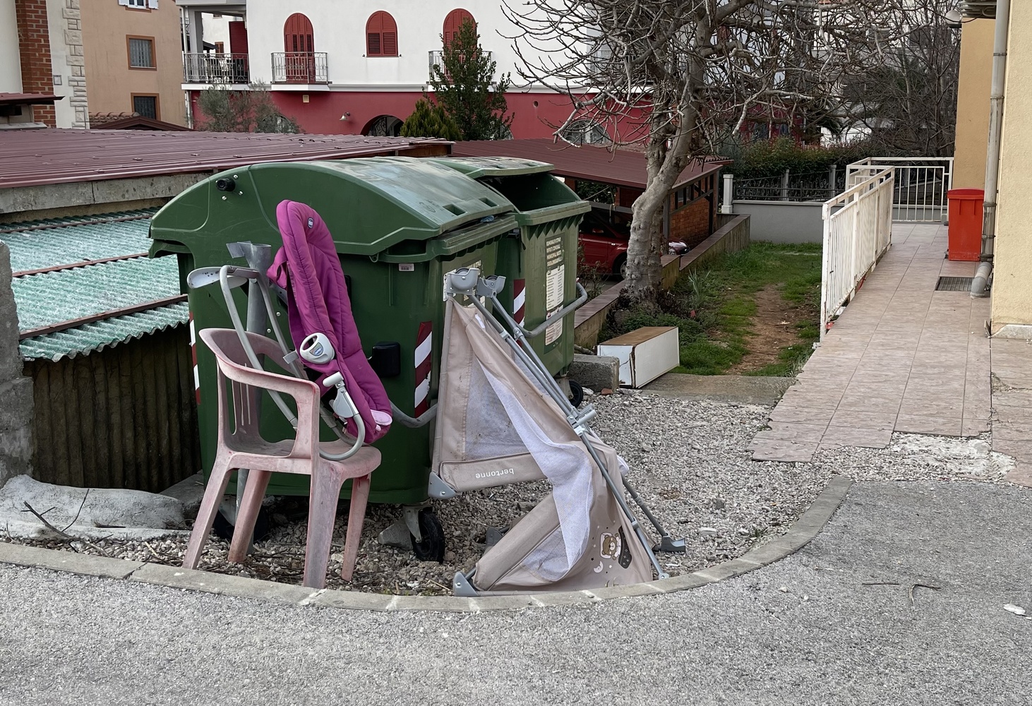 Poštovani, molimo Vas da pokupite odloženi otpad (uključujući i bijeli ormarić na stepenicama) i očistite područje oko kontejnera. Možete li oprati kontejnere? Hvala na odgovoru.