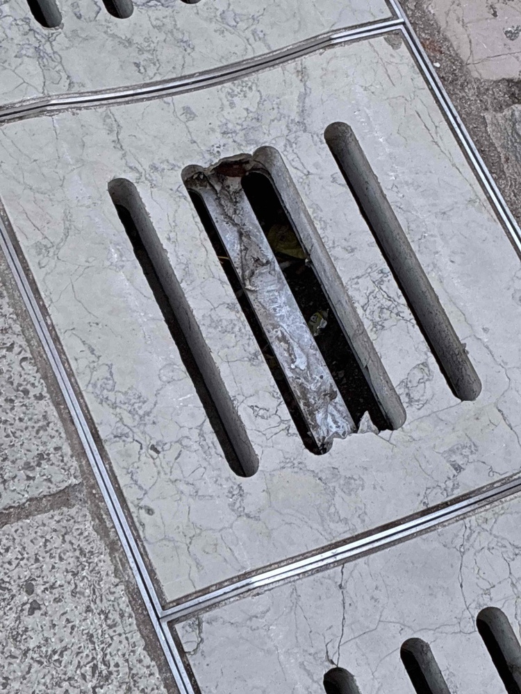 Na ulazu u Stari grad, točno ispod Balbijevog luka, oštećen je kanalizacijski kamen!