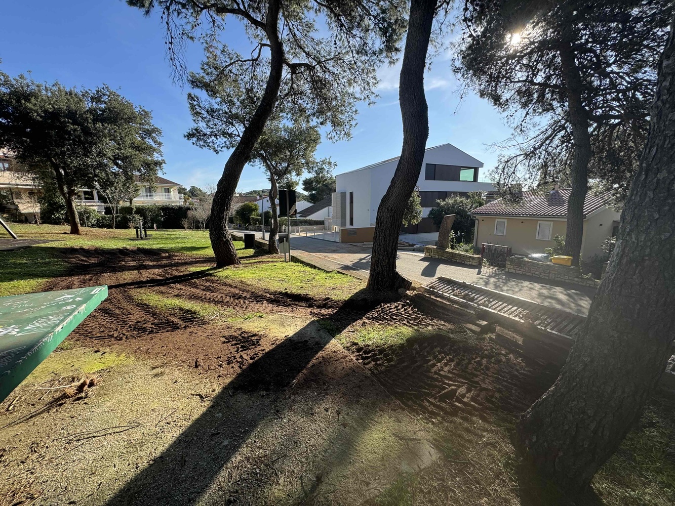 Privatno gradilište preko puta koristi javnu površinu za parkiranje strojeva i odlaganje dijelova, što je dovelo do oštećenja dječjeg igrališta i uništenja betonske ploče na kojoj se nalazi stol za stolni tenis. Vidljivi su tragovi gdje je vozilo prešlo, a upravo na tom kutu puknula je betonska ploča koja je bila neuništena više od 40 godina. Ulaz na dječje igralište, koje je prije bilo prekriveno travom, sada je pretvoren u čisto blato i ogoljenu zemlju. Imam više fotografija kojima mogu dokazati sve navedeno.