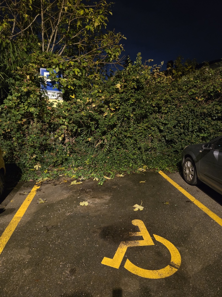 Zar nije sramota ovako zapustiti parkiralište u centru grada? Mjesto za invalide je gotovo nevidljivo, zbog čega tamo parkira tko god želi. Nema nikakvih kontrola od strane prometnih redara. Molim vas, poduzmite nešto, barem očistite grmlje malo.